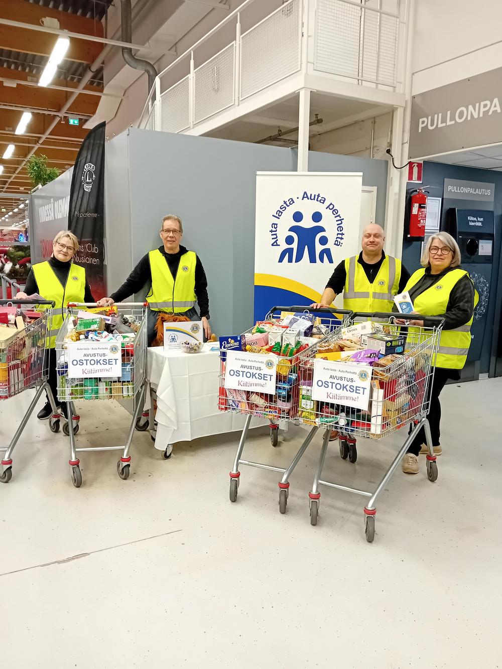 Auta lasta-auta perhettä-tapahtumassa 28.-29.11. olimme Maskun Tokmanni-Eurosparilla , kuvassa ladyt Kirsi-Marja Forsgren ja Mervi Lahtonen alueen puheenjohtajan Samuel Raunion ja ylläpitäjän lisäksi . Saimme taas mukavan määrän tuotteita toimitettavaksi Maskun ja Nousiaisten diakoniatyön kautta.